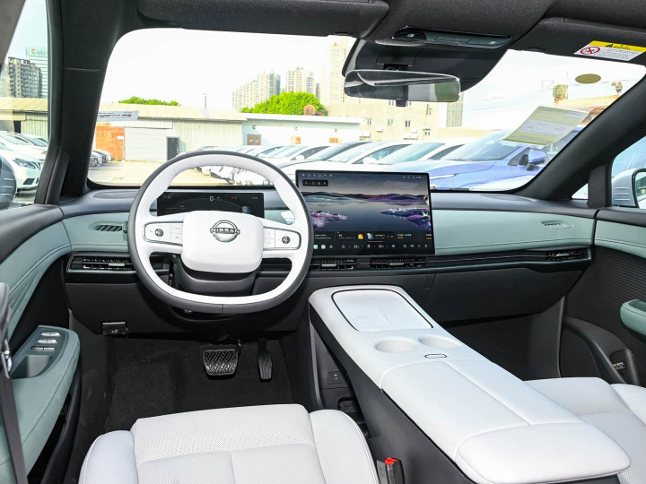进入车内,该车应用双辐式多功能方向盘、电子怀挡、10.25英寸全液晶仪表盘以及15.6英寸2.5K中控屏。日产N7搭载的NISSAN OS车机系统由高通骁龙8155/8295P芯片提供硬件支持,支持自由桌面、场景模式、高德定制导航、华为HiCar/苹果CarPlay/ICCOA Carlink手车互联等。而空间表现彻底诠释了 “越级” 二字。基于纯电平台优势,通过 A 柱前移与扁平化底盘设计,实现了 83% 的超大得房率,远超同级平均水平。2915mm 轴距转化为实实在在的乘坐空间:前排有效头部空间达 1022mm,后排膝部空间 707mm,1 米 8 乘客跷二郎腿毫无压力。纯平的后排地台搭配 555mm 的过道宽度,让中间乘客无需委屈侧身。座椅延续日产 “大沙发” 基因,升级为 AI 零压云毯座椅,