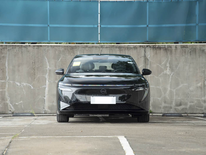 我们首先来看新车的外观设计方面,日产N7 的车头设计堪称合资电动车的审美突破,采用全新 V-Motion 流动设计语言,低俯宽大的姿态营造出强烈运动感。封闭式前脸是纯电车型的标志性元素,搭配由多颗高功率 LED 组成的贯穿式星环灯带,解锁车辆时会呈现动态迎宾灯语,夜晚点亮后辨识度拉满。最具巧思的是 “魔法画布” 智能交互灯语系统,不仅能自定义节日祝福,还可实时显示充电进度,让科技感转化为实用仪式感。六种车身配色中,霜雪白的珍珠漆在阳光下泛着彩光,森野青则透着低调运动气息,满足不同家庭的审美偏好。不过有用户反馈,浅色车身对前脸线条的勾勒稍显突兀,算是细微缺憾。